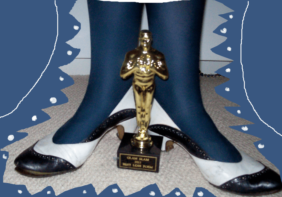 So, last night was the third Glam Slam in a row I’ve been too. It’s only on once a year but it is always so fun and I’m always partial to a theme, plus the host, Ernesto Sarezale is super-organised like myself. So, a good excuse to post pictures like the one below. My theme was ‘loss’ and I had to wear blue. I had a ‘San Francisco Loves You’ t-shirt that I got on holiday but I got make-up on it so had to change – gutted.