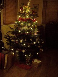 I’ve taken a few comparison shots of Christmas trees as I’m pretty proud of our tree this year 🙂  Mine is the one at the end, and you can see it all lit up on the left of this text.