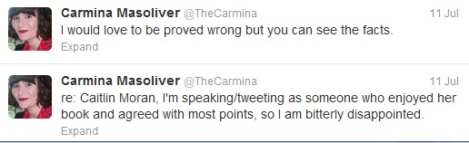 Another eventful occurrence before Latitude involved self-proclaimed Strident Feminist, Caitlin Moran and a little social media website called Twitter. For those who don’t know, Moran is the author of the book How to be a Woman, which I have reviewed here previously (although disagreeing upon some issues, I was extremely enthusiastic and fanatic about the book). Anyway, I had been linked the following convo via Facebook: