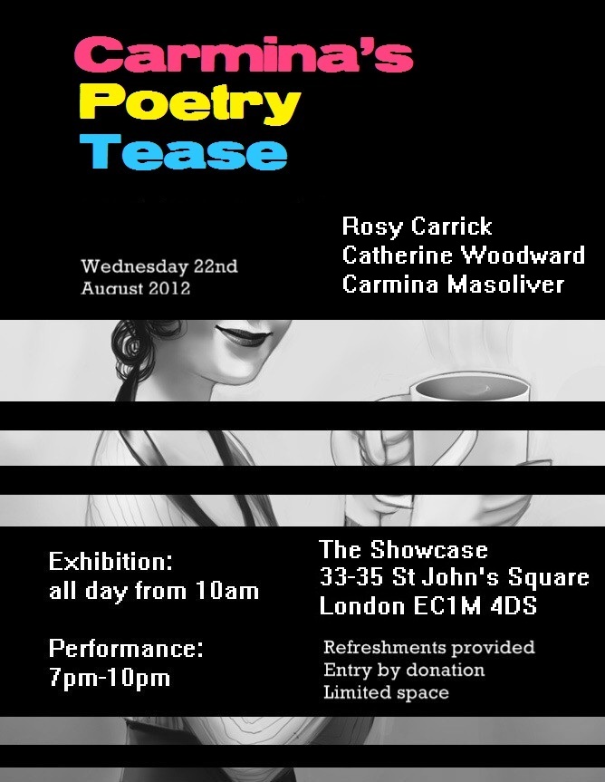 If you want to find out about it in more detail, you can read up on my article at the UEA Concrete website. In the article, I don’t mention that just before Latitude Rosy Carrick officially confirmed her performance at the event I’m organising. She’ll be representing the inspirational professional poet for the evening and I’m really excited to have her on board. I also had responses from a couple of other poets, so in order to thank them, here’s a little linkage to their websites: Hannah Silva and Sophia Blackwell. Hannah Silva is based in Devon at the moment therefore the gig payment would barely cover her costs (free travel for poets and musicians anyone?) When I got Sophia Blackwell’s email I had already accepted Rosy Carrick, but was tempted to put them both on… before I remembered I’m making quite a big loss on the event as it is. They’re all amazing poets anyway and I urge you to check them out.