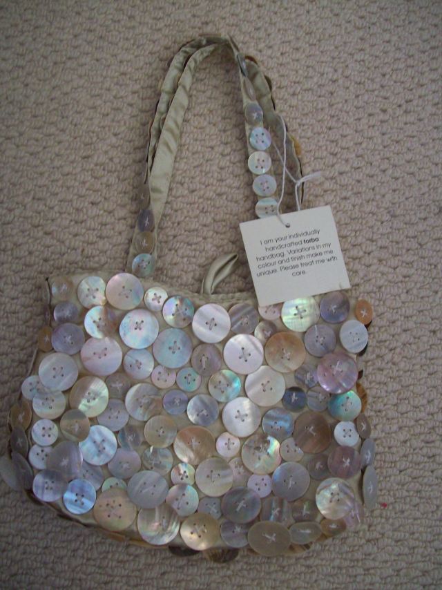 This item has never been used and still has it’s label saying that it is handcrafted and each bag is unique.