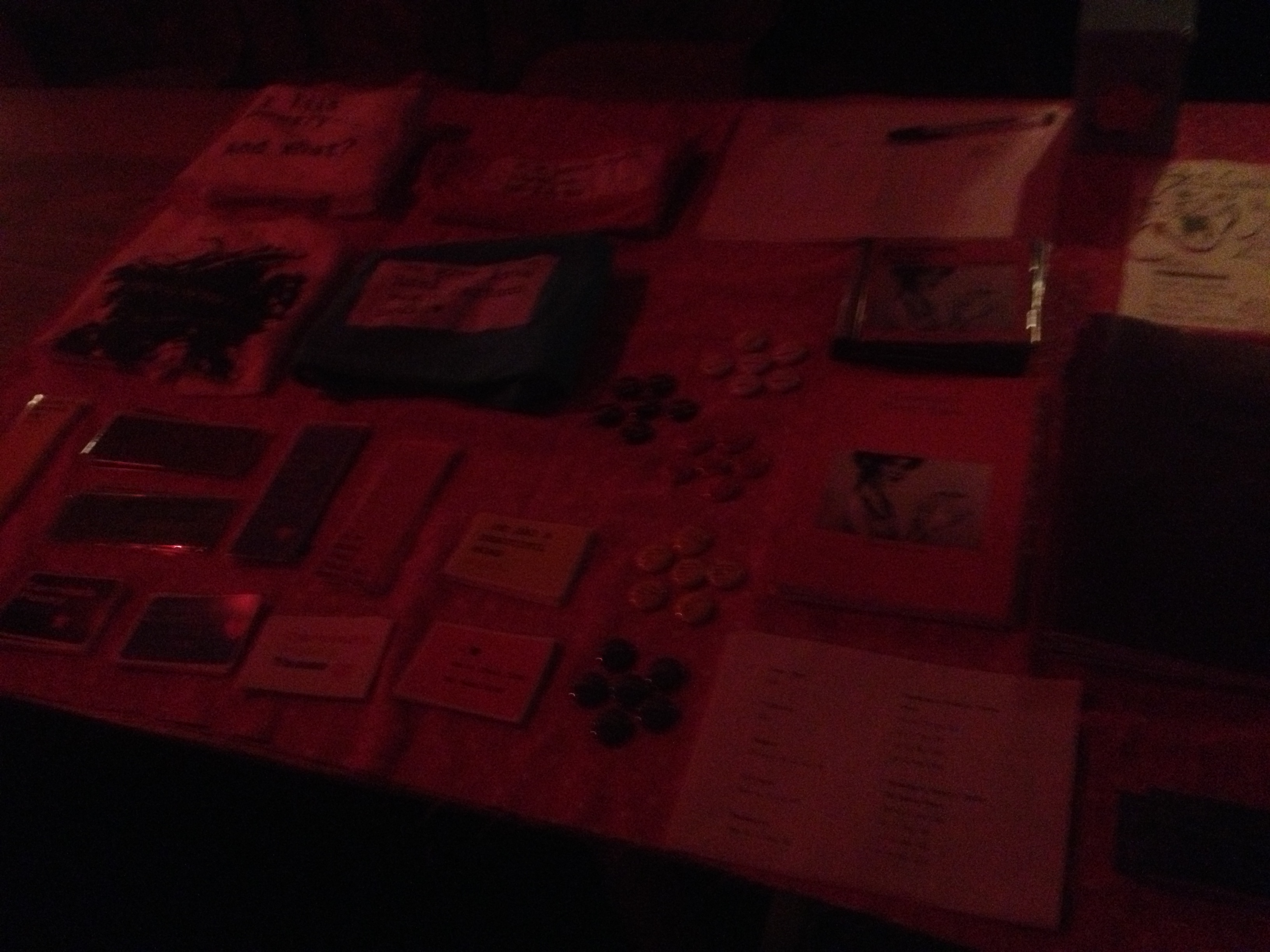 I also had a stall at the Saboteur Awards, which was great (despite my fever) and I got to meet a few cool people.  I can now said I have been fortunate enough to have worked for an award winning company (Penned in the Margins), taken part in an award winning project (Shake the Dust) and performed at an award winning night (Bang Said the Gun). Check out  what you missed out on by Richard T Watson, and Dan Holloway (who said my stuff was like ‘Cath Kidson branded poetry’).