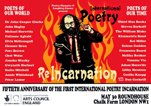 Kei Miller reminded me that I want to buy his collection, and poets such as John Hegley and Elvis McGonagall brought excitement to the event in the form of rhyme, rhythm and comedy. Music was used effectively throughout the show, breaking up the mass of spoken word, and including more experimental and psychedelic parts that were evocative of the 60s, yet Gwyneth Herbert was a powerhouse in this respect, with a voice that ranged from soft and subtle to loud and proud. Janaka Stucky was a poet I was unfamiliar with, and coming from Boston, it felt a privilege to see him perform his work. Salena Godden, recently mentioned by Hannah Silva at The Place for Poetry, was even more of a delight to watch after hearing this analysis. Francesca Beard was a poet I recently argued at She Grrrowls, and I saw her do some of the same, as well as new material, and again, she left me wanting more, with every word layered with meaning, yet also dishing out a dry, witty humour throughout her set. I sadly missed the end of Dr John Cooper Clarke’s set, and leaving after a couple of sexist, tired wife jokes, I was disappointed with what I did see, but hopefully I’ll be better impressed when I see him again in July. The way poets such as JCC are often held on a pedestal, it seems almost sacrilege to dare say his jokes were sexist, and as much as I want to suggest that perhaps I just couldn’t keep to the the speed of his speech, I can’t deny that these cliched wife jokes just don’t tickle me. And surely, if we want our poetry to be truly revolutionary, I can’t be too scared to say something is sexist. What this event did showcase, as well as the non-programmed event simultaneously taking place in the Made in Camden bar, of which I was meant to be a part, is the vibrancy and variety of contemporary poetry today, and the importance of learning about poets who came before us.
