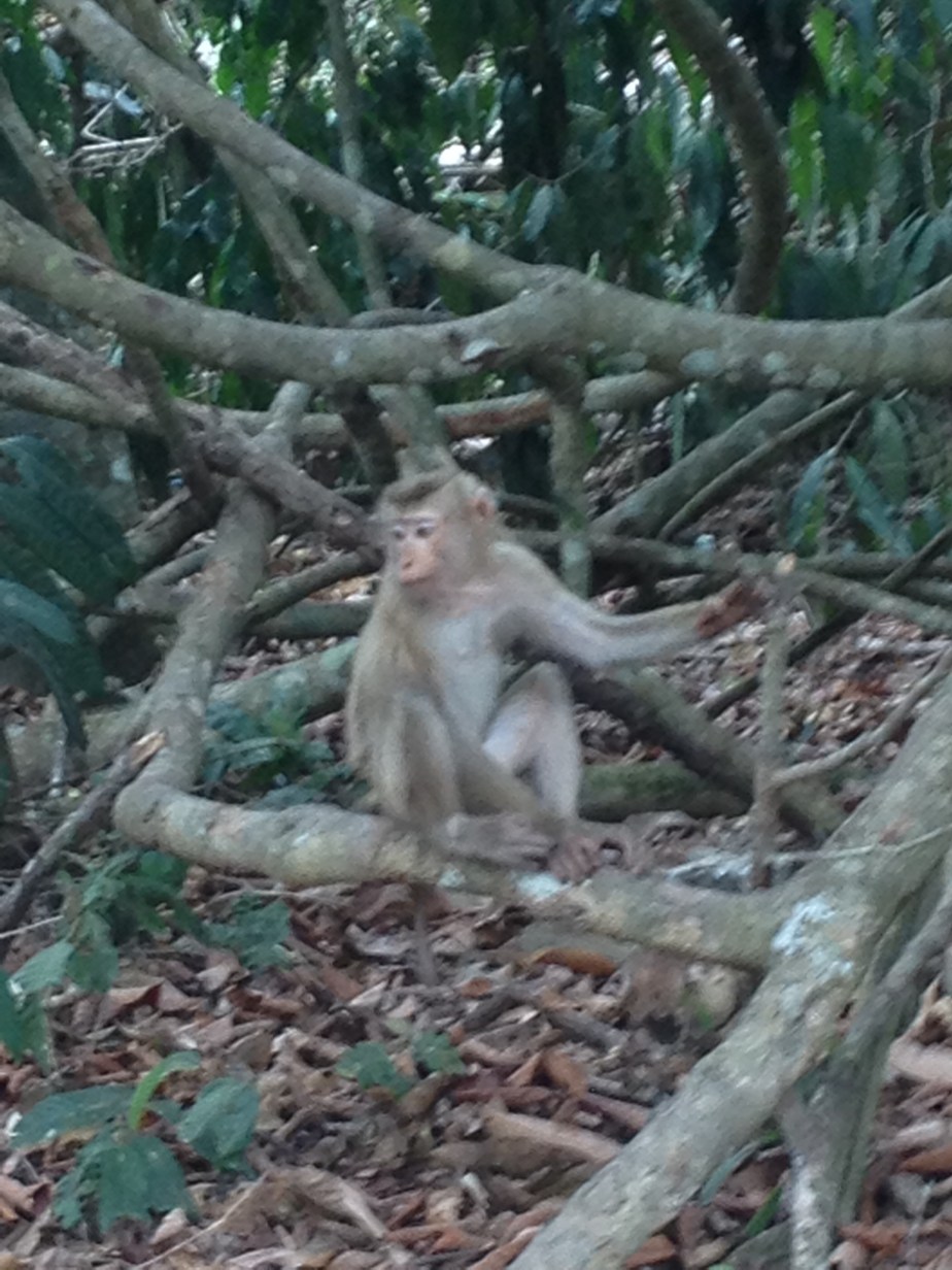 It was cool that our tour guide was able to take us off the trail to parts he knew that were good to find Gibbons and other creatures, so we spent lots of time looking up at the tree tops to spot these, as well as trekking through the jungle and seeing other interesting things like a tangled tree that you could go inside. We had started the tour at about 7am and finished around 7pm, so we were certainly tired. I didn’t mind too much about not seeing elephants, but I guess it was a bit of an anticlimax not seeing them, purely because our guide seemed so determined to drive around to look for them… They need some kind of elephant tracking device, because the Khao Yai National Park is so massive! We climbed down a steep bank to see a crocodile, but they don’t move much, so after a quick look, I began to become tired and irritable due to the insects following me around. The monkeys are always my favourite bit when it comes to animals, and we got to see some up close as they gathered near at lunchtime, as well as spotting some deer.