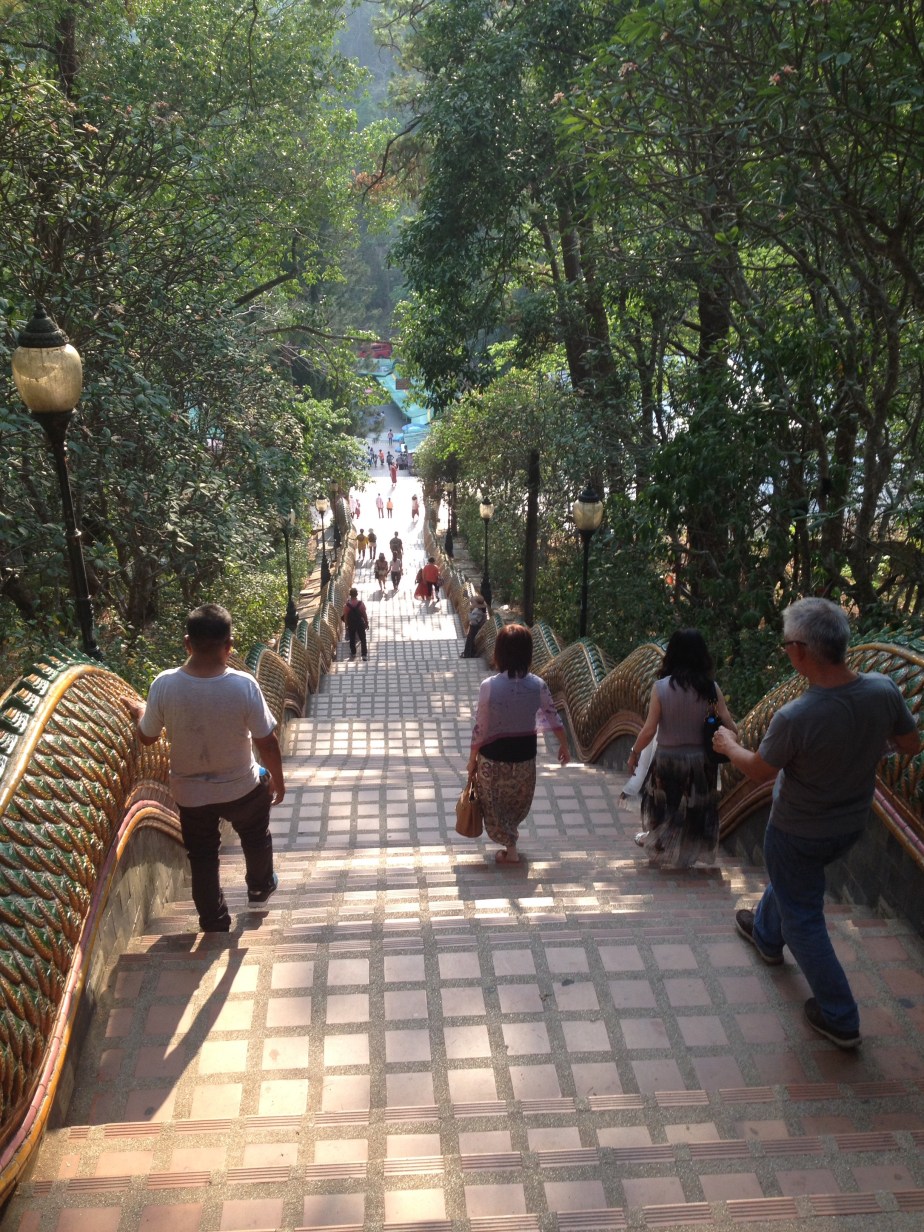Our last stop involved a ride out of the main area to Wat Phra Singh. Here we walked up a large set of steps and saw a parade of music, though we were unsure of the occasion. The grounds were interesting, and the sight was pretty amazing too. The sun was setting and our eyes were closing on the 30-45 minute drive back to Chedi Home. By the time we got out to eat, we just went somewhere nearby. The food was average, and it was strange as we were the only ones there and music was pumping. Some of the locals, probably family friends, played pool nearby.