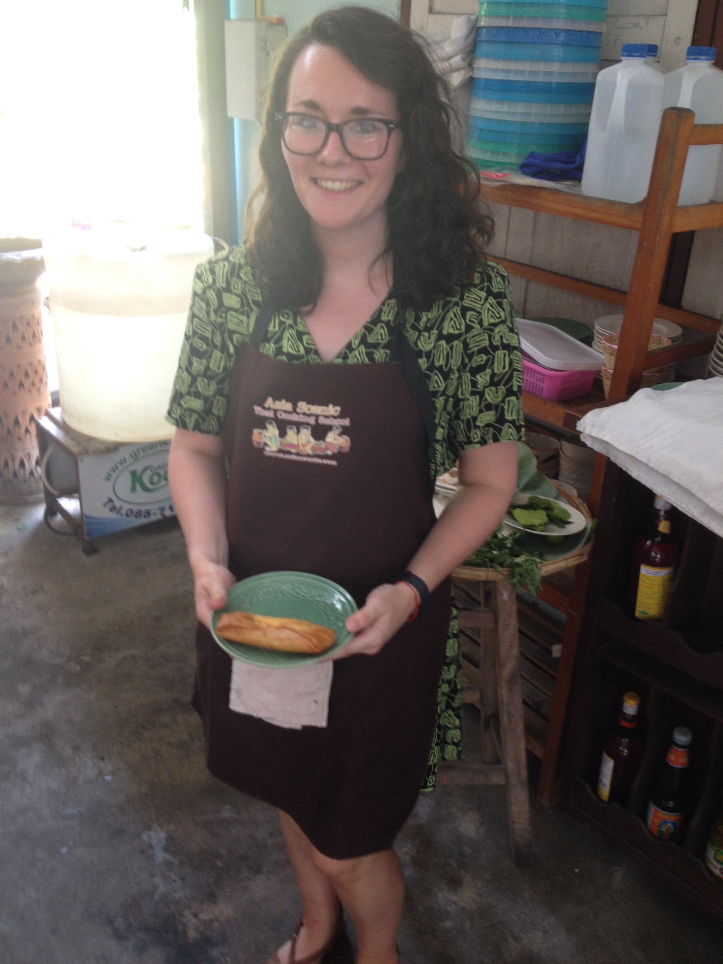 We were picked up at 8.30am, so no birthday lie-in for me. We attended a Thai cookery class that lasted until around 1pm. We were taken around the market and shown around the garden. I then cooked Pad Thai, a coconut milk soup, vegetarian spring roll, curry paste and Penang curry. I was worried about the curry because I knew it had ingredients in the paste that I didn’t like, but the peanuts were plentiful and it was the best one of tasted. I’d ordered it elsewhere and it had been awful, but at least I know how to make it myself now! We were given a recipe book with all the meals we could have cooked. I will definitely want to try them out when I’m back at home.