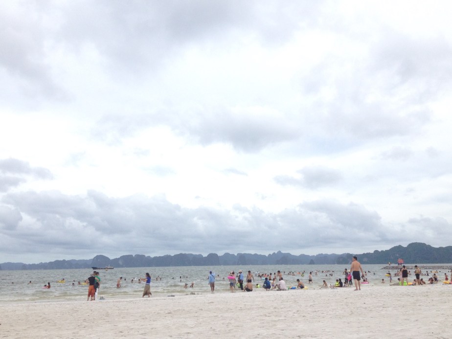 We headed for the beach, and it was packed with Vietnamese people, who we heard were at the start of their holiday period. We walked down the beach to find somewhere less crowded and swam in the water. It wasn’t a clear blue, but it felt so good. The temperature was ideal, cooling us from the humidity and heat, and it felt so smooth to swim in. It was so relaxing to float on the surface as the waves gently moved you, the mountainous landscape surrounding you. The sand was also so easy to walk on that we questioned whether it was real or not.