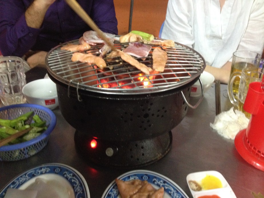 After work tonight, myself and some other teachers, and one of the TAs, went to the local street food spot and had some beer and a bbq. I don’t like pork much, but it tasted good, and though I didn’t like the beef, I loved the squid, and we had some noodles with it too. Just one month left in Vietnam now and so I’m starting to plan the next lot of travels!
