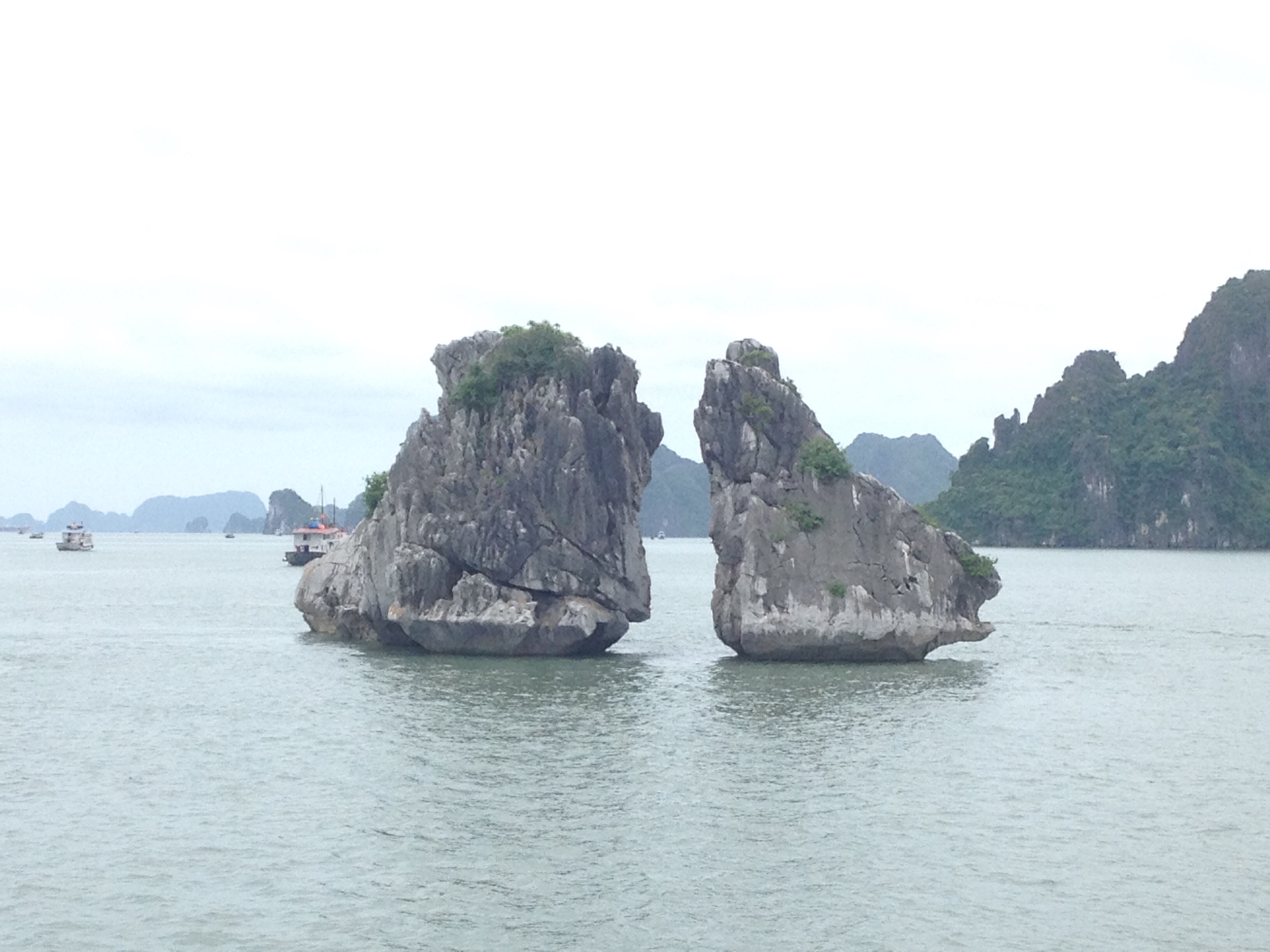The last stop was passing by the “fighting cocks” rocks. On one hand, I was ready to go back, but on the other, it would have been great to stop on an island to swim and eat. We got a taxi after another great seafood dish, then took a bus back to Haiphong city, arriving tired and a little sunburnt from not wearing protection under the clouds. We ended the night on a takeaway from Indian Kitchen.