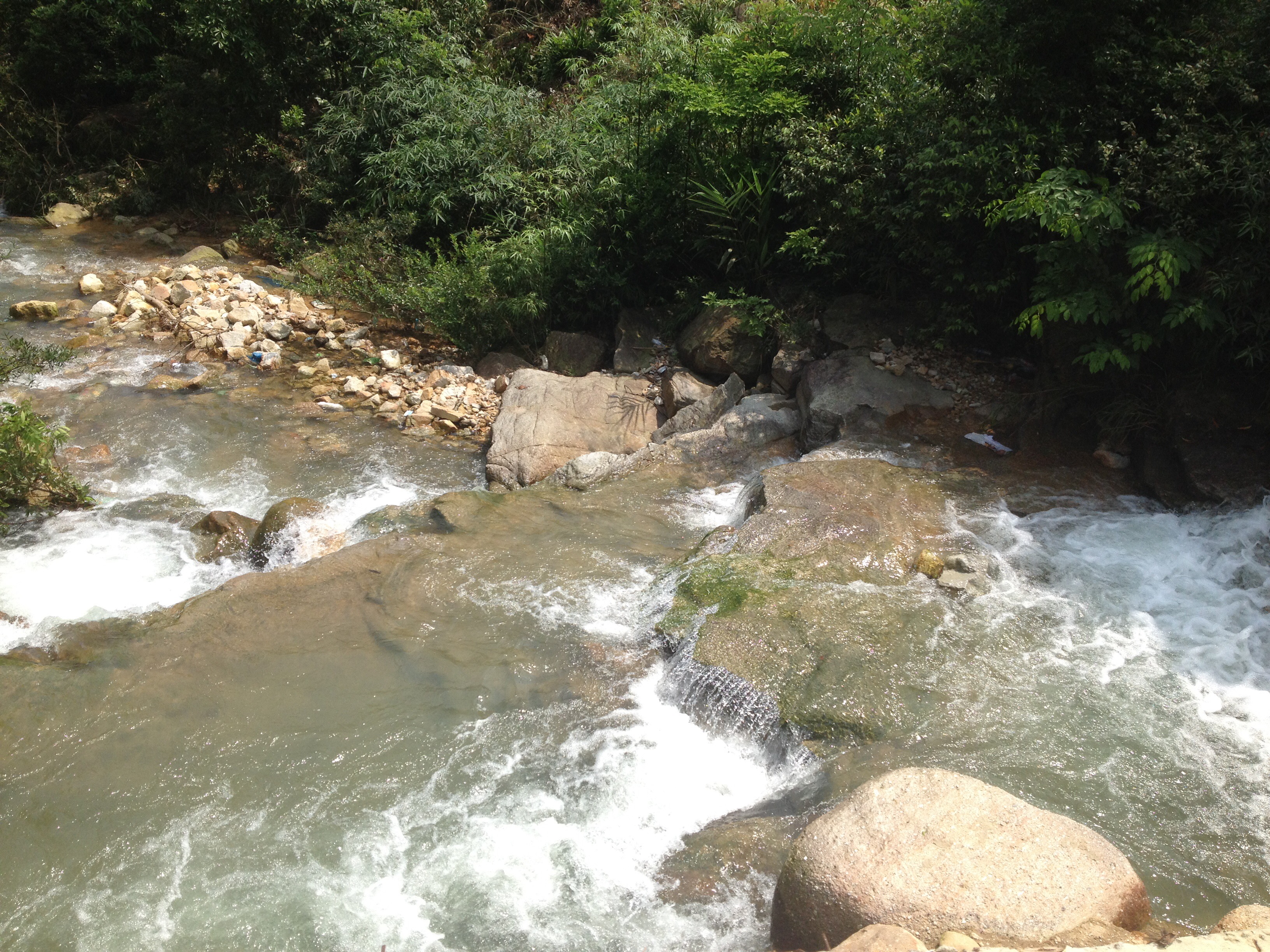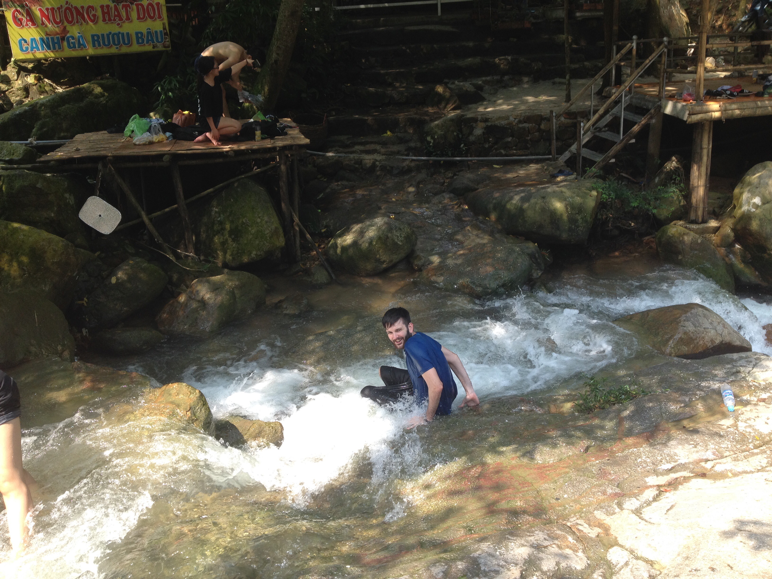 We took at taxi to Lựng Xanh waterfall. We walked beside the gushing waters, following its pathway upwards. We got to a place where locals were playing in the waterfall, and we joined them, sitting amongst big boulders, redirecting the water’s path over our legs.