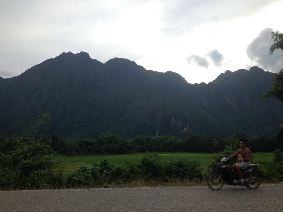Anyway, it was a great drive with amazing views, and I took this photo which really captures of the lively things I’ve found in Laos – family life, cute children and, in this case, paternal love.