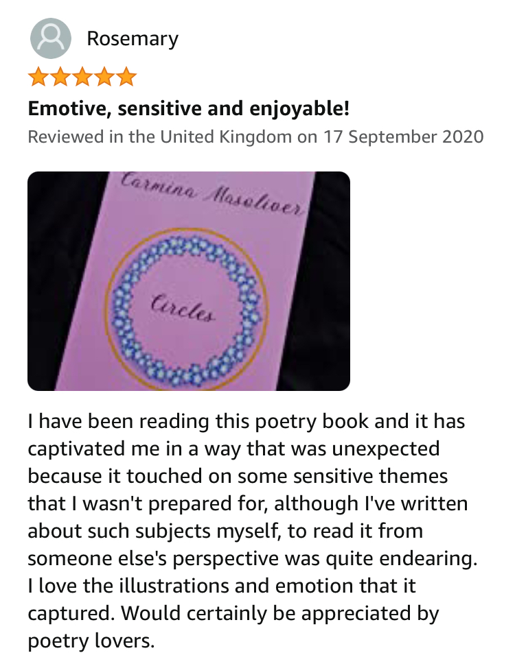 I’m currently offering the chance to win a free copy of my book, ‘Circles’, and to be in with a chance of winning, you should be following me on Instagram, and then like or share this post by midnight on Sunday 7th March. Here are some pictures from the post, celebrating the journey so far, which has seen a 4-star review of the audio, and a 5-star review of the book, as well as some really lovely words that people were generous enough to share with me