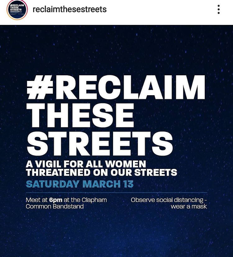I posted on Instagram about Reclaim These Streets on Saturday at 6pm at Clapham Common Bandstand, and Reclaim The Fight at 6pm in Trafalgar Square, inspired by Reed of Come Curious, posting messages from my phone of a selection of texts with the words “home safe”. This is a vigil in honour of Sarah Everard, whose tragic case has unravelled this week. On Monday, I was walking through Brockwell Park looking at the posters, and now a police officer has been arrested on suspicion of her murder. I cried when I read about her remains being found in Kent.
