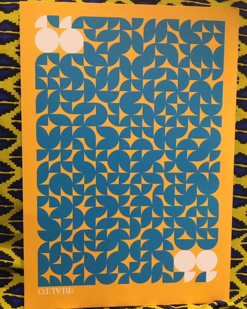 This week’s biggest news is that I’ve had work published in The Rialto, with issue 96 launching on the Thursday just gone. My poem ‘my name in an english accent’, is about my name. It deals with the experience of being ‘Othered’ because of it growing up in the UK, and my experience of then living in Spain, where my Englishness was more apparent than ever before, and talking to someone I met there, who I never became as good friends with as I would have liked, but felt an affinity to, perhaps as they were from Norwich, where I went to university, and perhaps also because our conversations were deeper than a lot of others when getting to know new people in a new city.