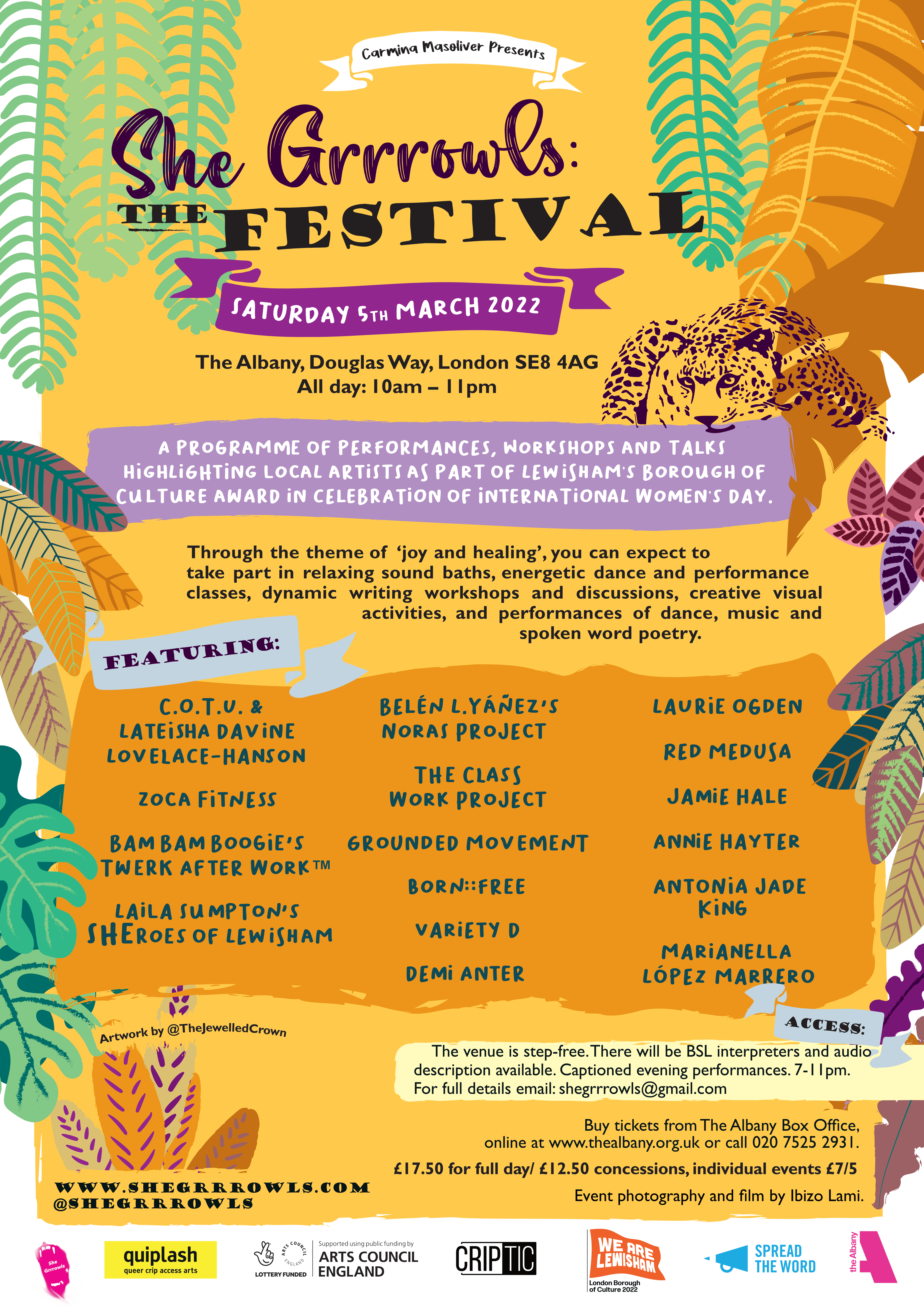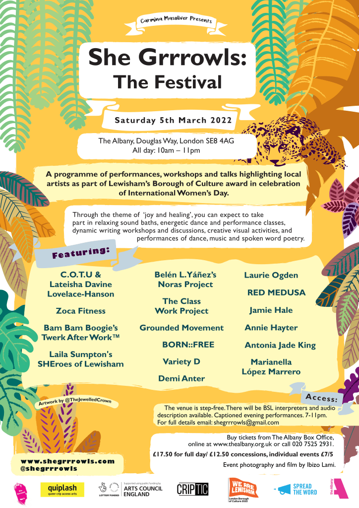 She Grrrowls, Quiplash, ACE, CRIPtic, Lewisham Council: We Are Lewisham, Spread the Word, The Albany