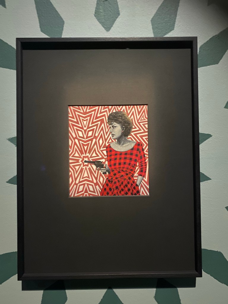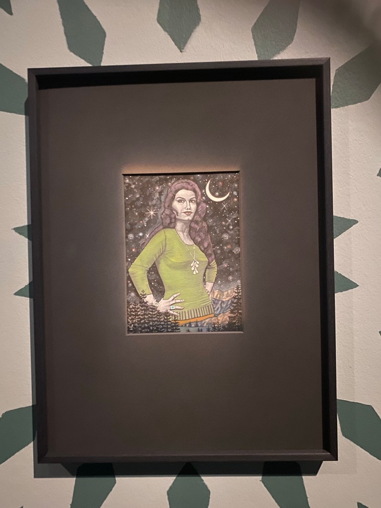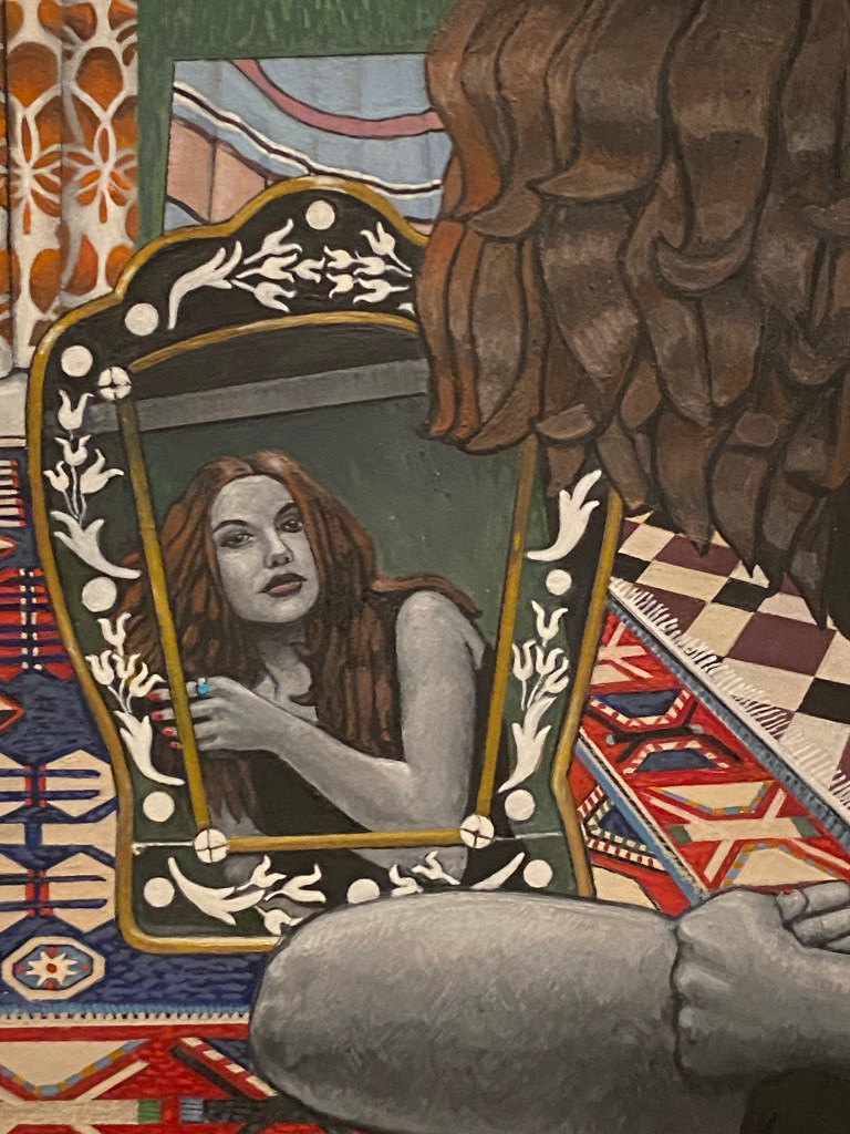 Yesterday, I went to see the Soheila Sokhanvari ‘Rebel Rebel’ exhibition at The Barbican. An Iranian artist, it feels like a really important exhibition, especially poignant in these times with the femicides and protests in Iran. The exhibition is on until 26th February 2023. Featuring female actors and singers from Iran, each portrait is accompanied by a snapshot of their life story, which you can read about on the gallery website, often filled with details of exile, imprisonment, violence and mistreatment.