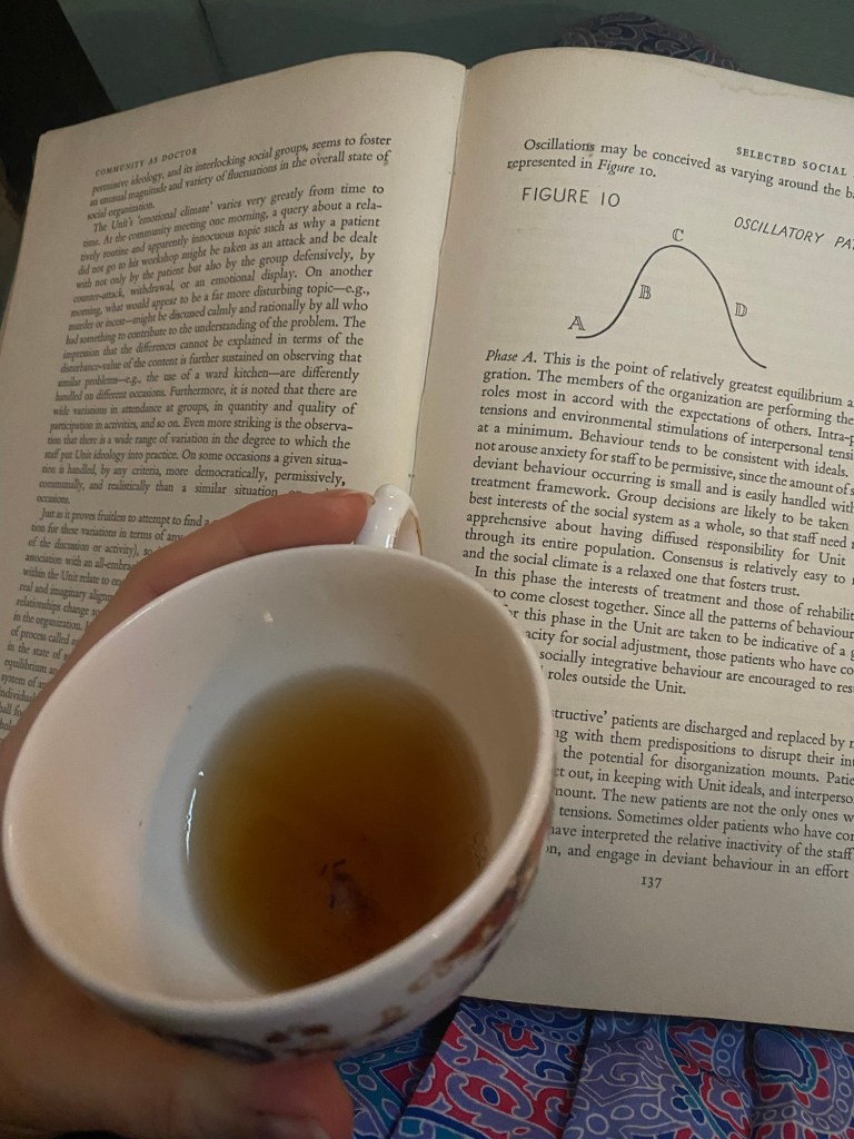 Placement has seen me going in on Mondays alone to attend the ward round, finding my voice in absence of my supervisor, and then spending Wednesdays reading for the most part. This week I also read in Canvas & Cream with a friend who is signed off sick due to burnout (working within the VAWG sector).
